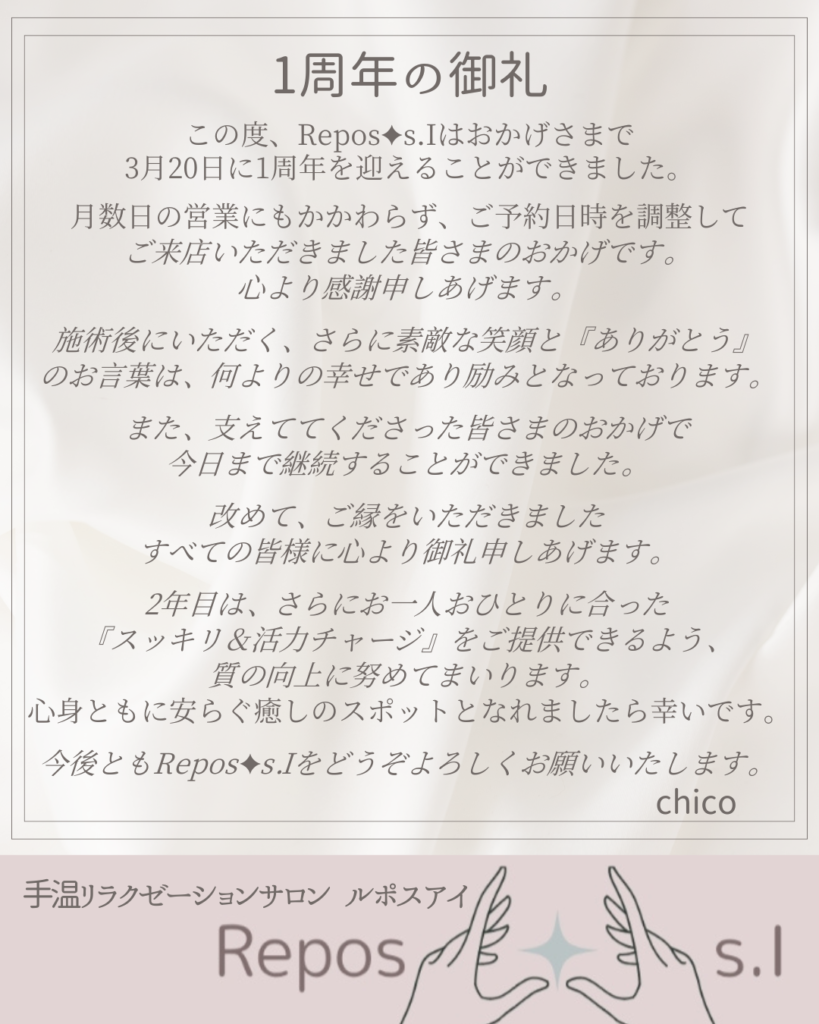 Repos✦s.I 一周年の御礼